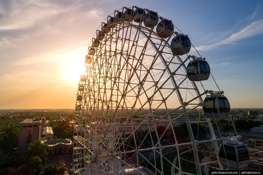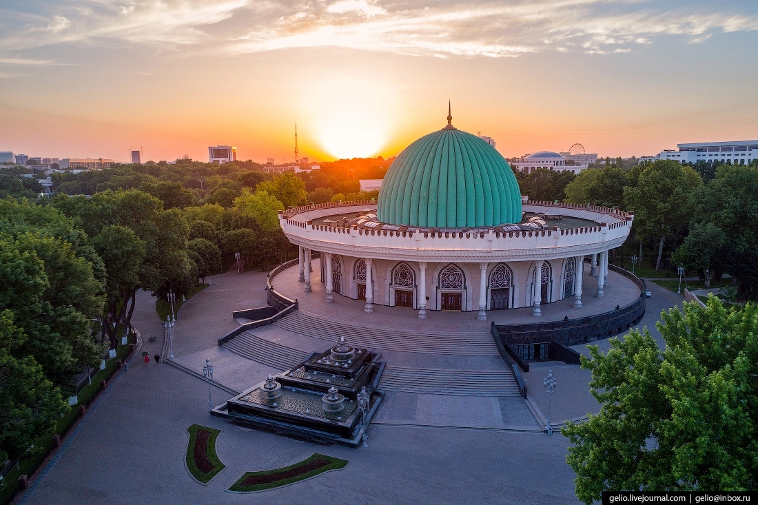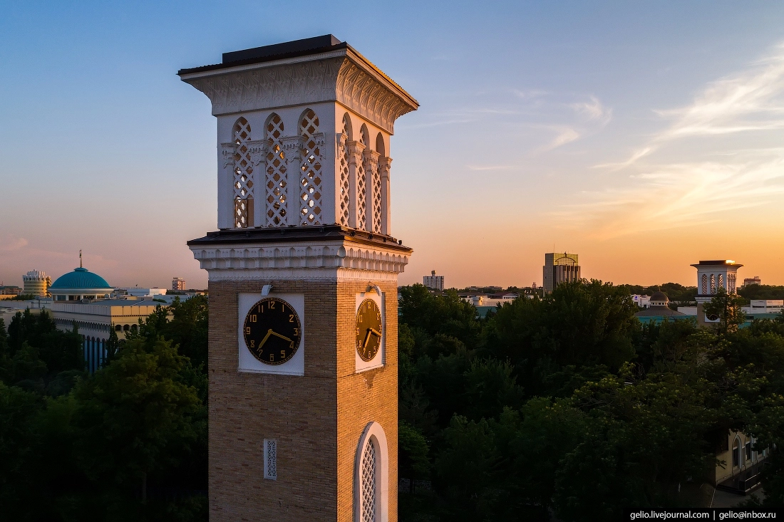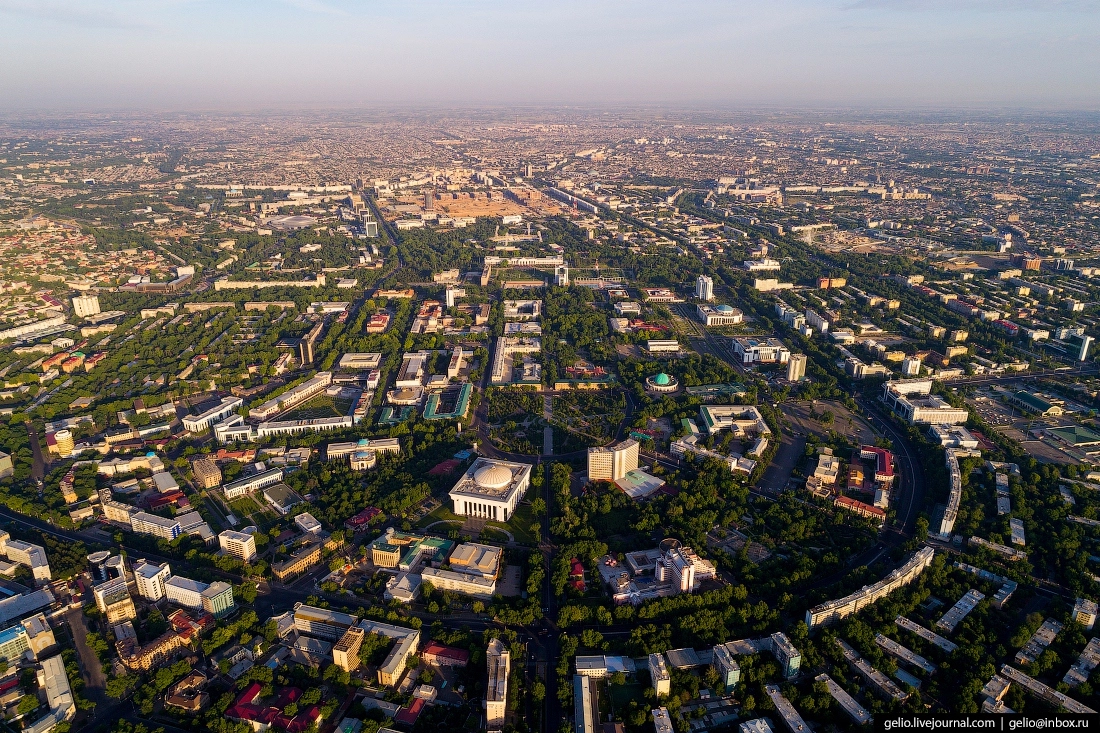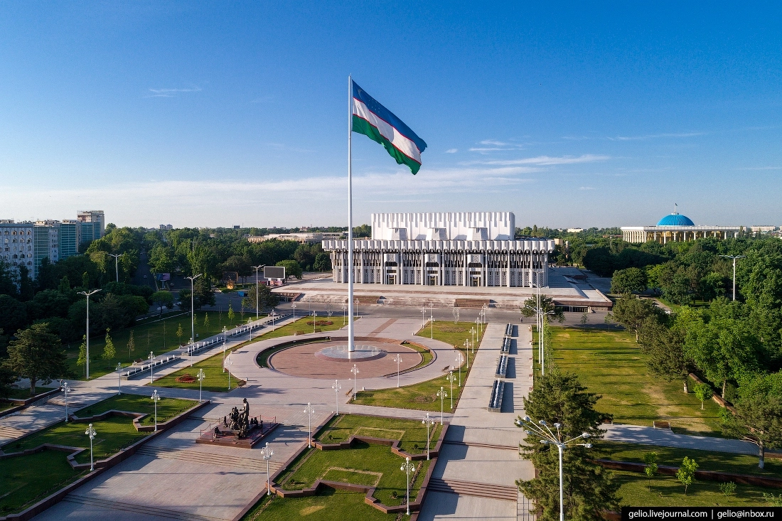 Больше половины территории Узбекистана занимают пустыни, но его столица — Ташкент — выглядит как настоящий оазис. Древний город, построенный в плодородной долине реки Чирчик, покрыт сетью оросительных каналов, украшен фонтанами и буквально утопает в зелени.