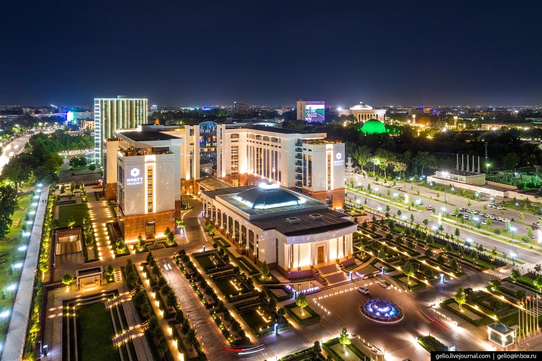 Hyatt Regency Tashkent Hotel. Пятизвёздочный отель в центре Ташкента открыли в 2016 году. В массивном здании располагаются 300 номеров, два ресторана, летнее кафе, огромный банкетный зал, 20-метровый закрытый бассейн, SPA-центр, семь конференц-залов и многое другое.