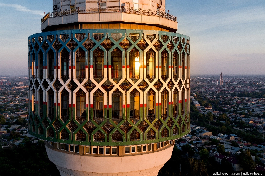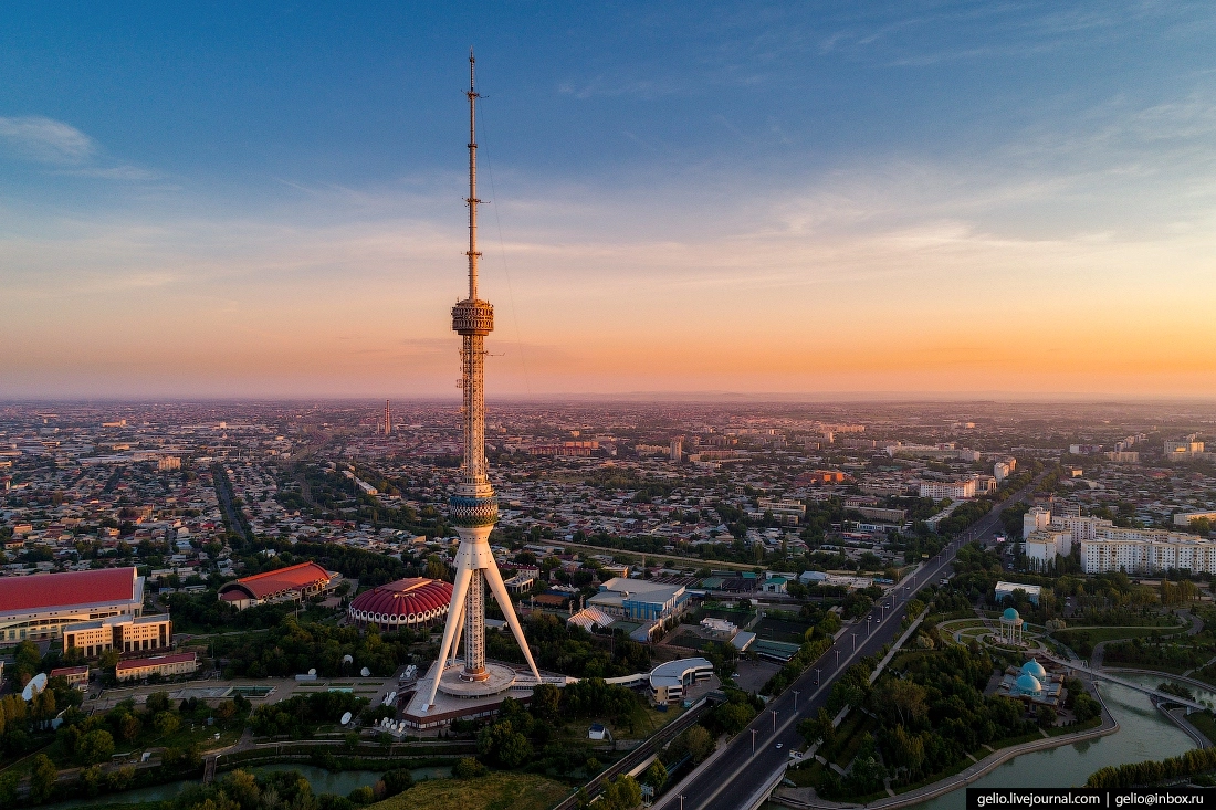 Ташкентская телебашня. 375-метровое сооружение возводили на протяжении 6 лет и официально открыли в 1985 году. Это самая высокая телевизионная башня в Средней Азии и двенадцатая по высоте в мире. На уровне 100 метров расположена смотровая площадка, откуда можно увидеть любой район столицы Узбекистана.