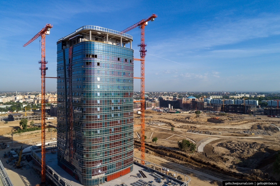 Возведение «Ташкент-сити» началось в 2017 году. На его территории появится первый в Узбекистане небоскрёб — 45-этажное здание с элитным жильем, офисами, ресторанами, SPA, фитнес-клубом и смотровой площадкой.