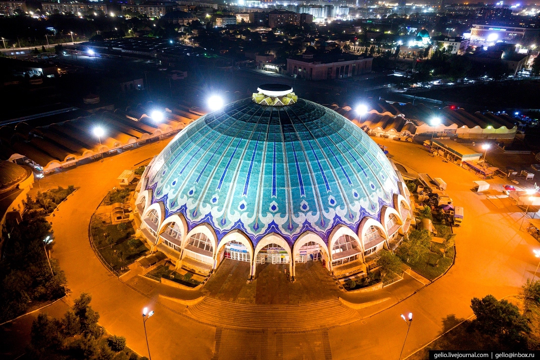 Ташкентский цирк. Его здание построено в восточном стиле и украшено декоративной решёткой. Внутри есть стеклянные витражи, керамическая мозаика и резные деревянные узоры.