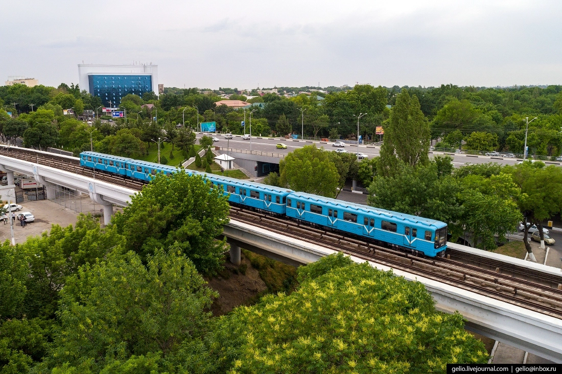 Ташкентское метро. Оно было открыто в 1977 году и стало первым на территории Центральной Азии. Сейчас поезда выходят на поверхность лишь на трёх коротких участках с мостами через каналы, но в ближайшие годы должны заработать две новые полностью надземные линии.