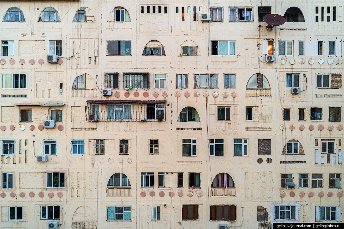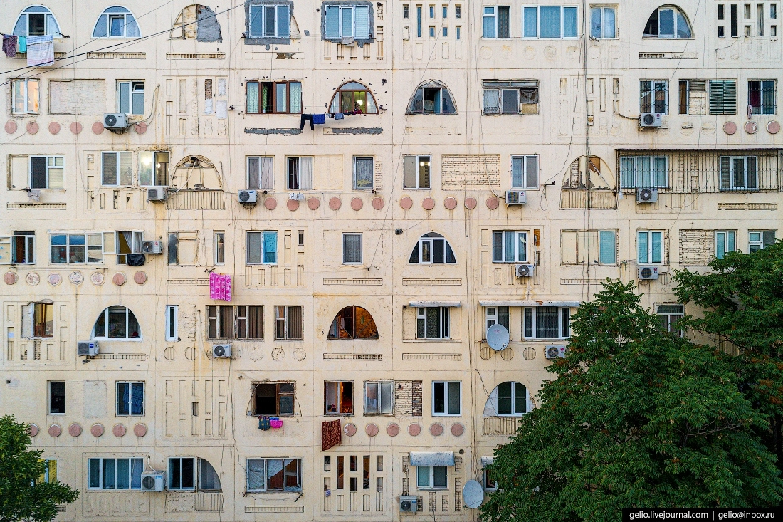 Яркий пример работы братьев Жарских можно увидеть в комплексе трёх 9-этажных зданий на улице Бабура.