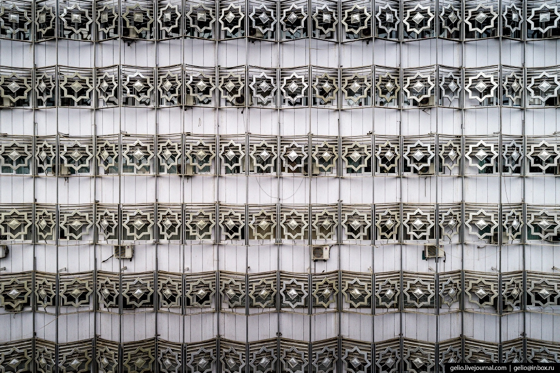 Кружевной фасад гостиницы. Этот архитектурный элемент называется «панжара». Узорные решётки не только украшают здание, но и защищают от палящего солнца.