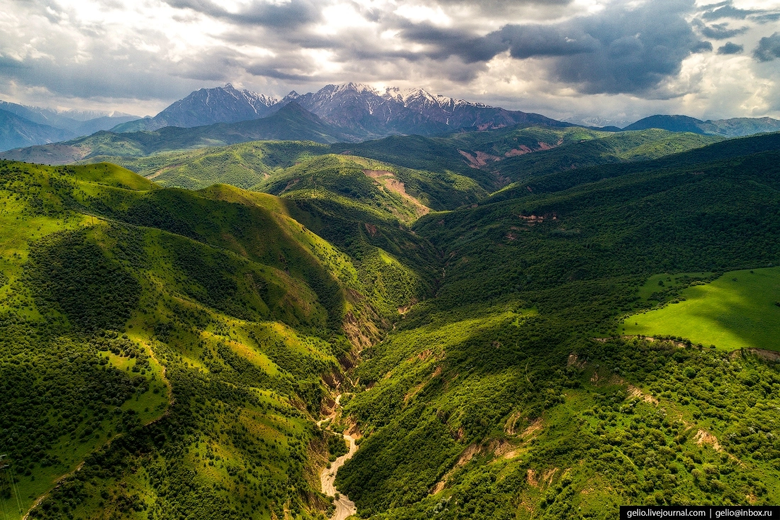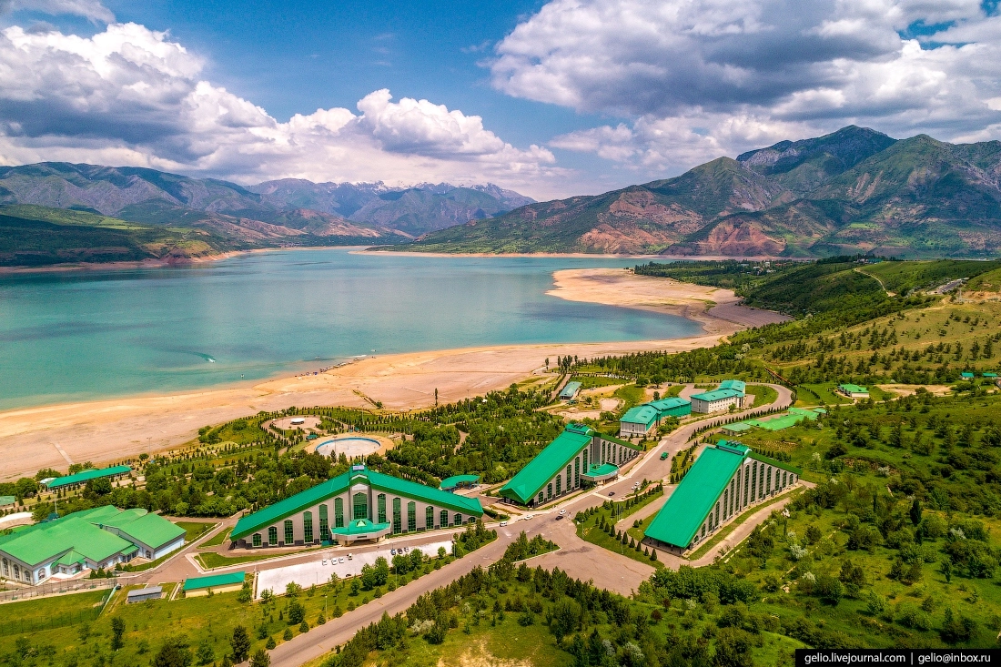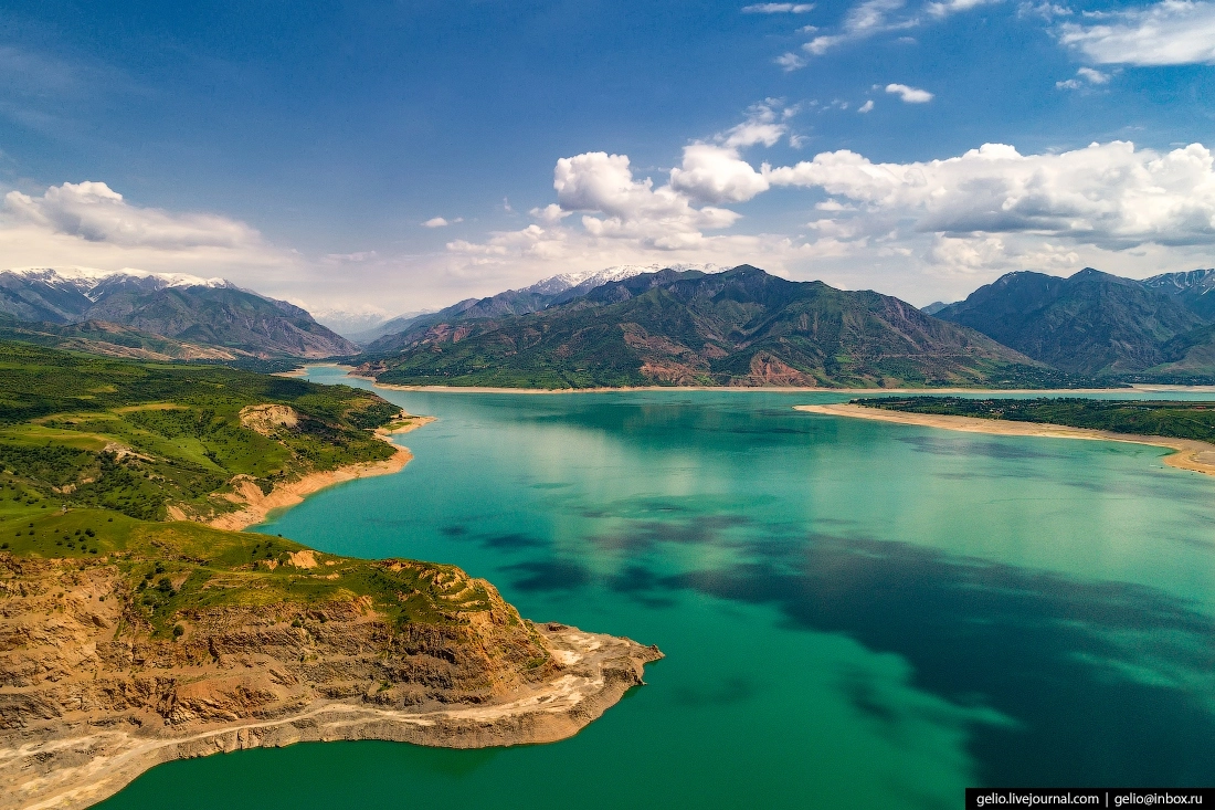 Ташкентская область. На севере, где проходит граница с Казахстаном и Киргизией, тянутся горные хребты западного Тянь-Шаня. Но главная достопримечательность этих мест — Чарвакское водохранилище, образованное плотиной ГЭС.