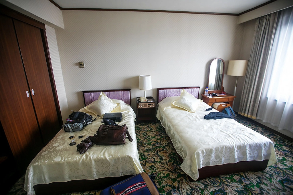 «Корё», отель, в котором нас поселили, по праву считается лучшим и главным в Пхеньяне. Во-первых, нам так сказали гиды, во-вторых, он находится в центре столицы и рядом с городским железнодорожным вокзалом. Пожалуй, на этом все.