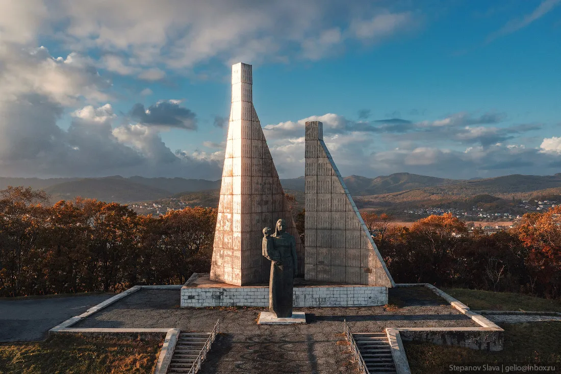 9. Мемориал «Скорбящая мать» установили в память о 24 рыбаках траулера «Бокситогорск», которые погибли в Беринговом море. Траулер затонул в 1965 году от обледенения во время десятибального шторма, вместе с ещё тремя кораблями — «Севск», «Себеж» и «Нахичевань». Всего тогда погибло около 100 человек.