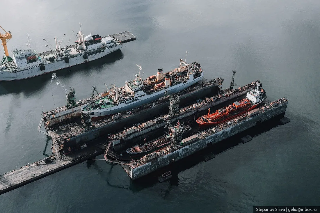 6. После 1993 года для завода началось сложное время — заказов стало в 2 раза меньше. В 1994 году у завода появился новый собственник — «Тихоокеанская торгово-промышленная компания». Её руководитель рассказывал, что даже не представлял себе масштабов экономических проблем на заводе. В 2009 завод признали банкротом и акционерное общество преобразовали в общество с ограниченной ответственностью. Сейчас это одно из крупнейших судоремонтных предприятий региона.