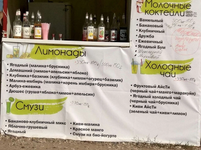 Но и для хипстерского пе**илования есть возможности, в виде модного смузи за 150 р. и коктейлей.