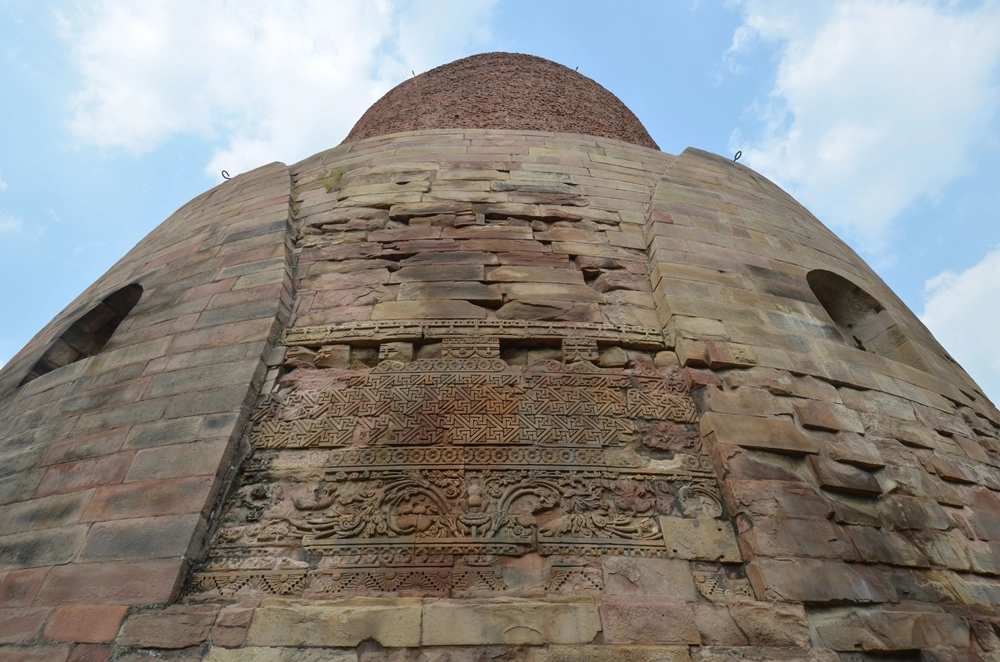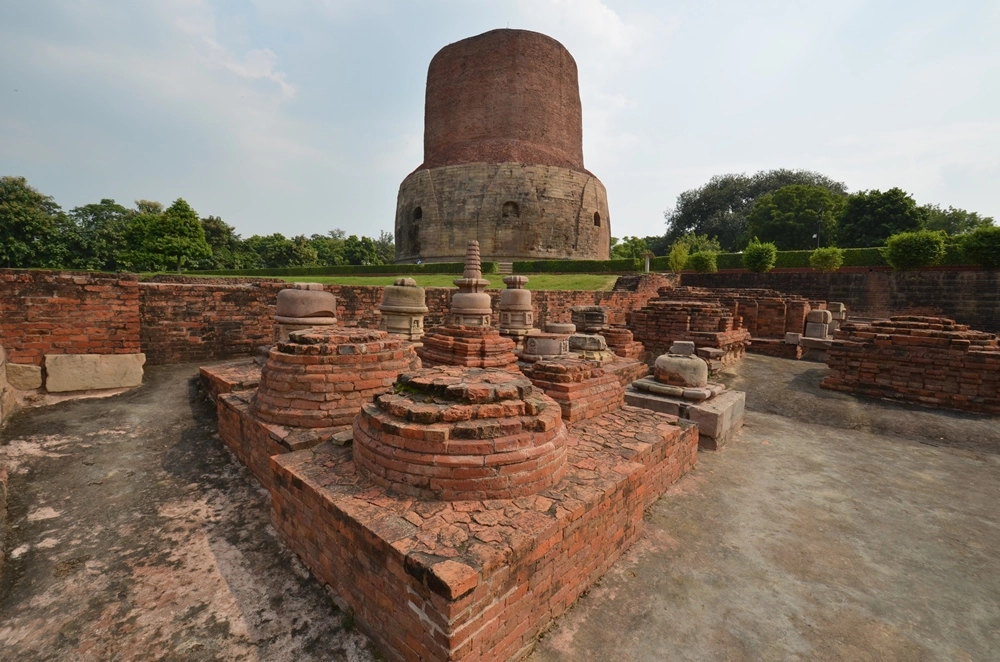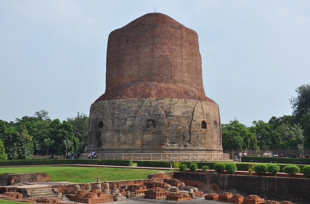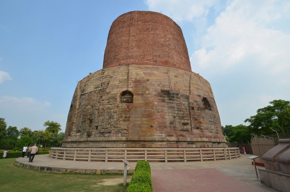 33-метровая ступа Дхамек установлена как раз в том месте, где Будда читал первую проповедь своим пяти первым последователям. Первая ступа была построена здесь ещё в 250 году до н. э. древнеиндийским императором Ашокой, принявшим буддизм. После этого она неоднократно перестраивалась, и нынешняя ступа датируется V веком н. э.