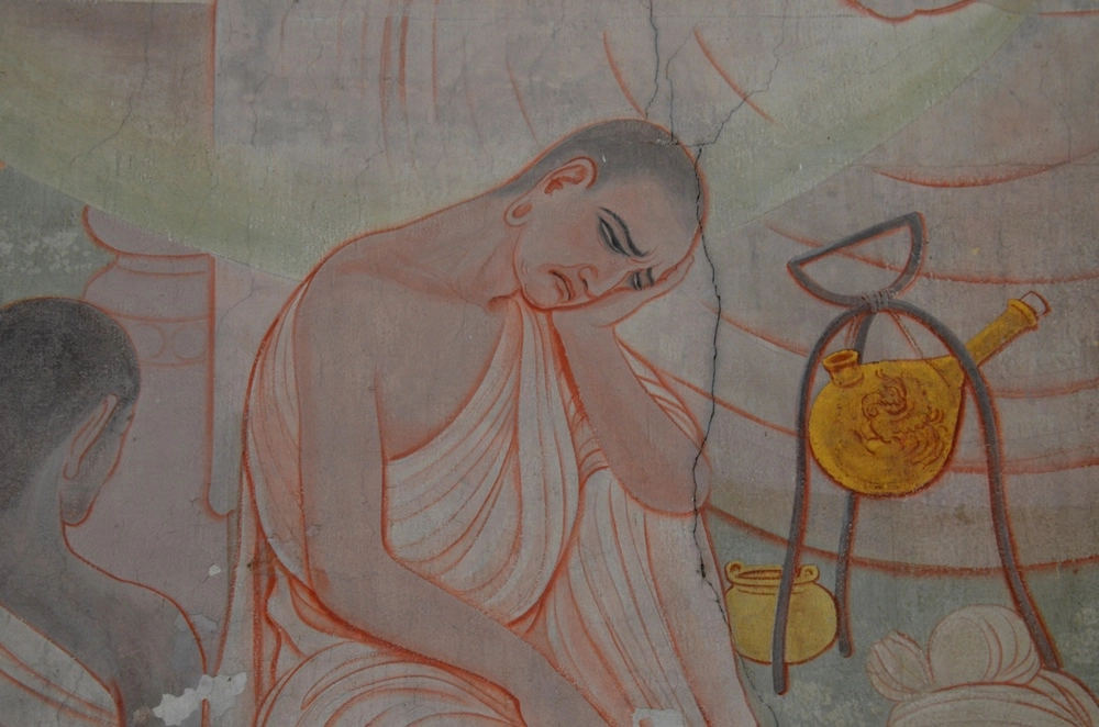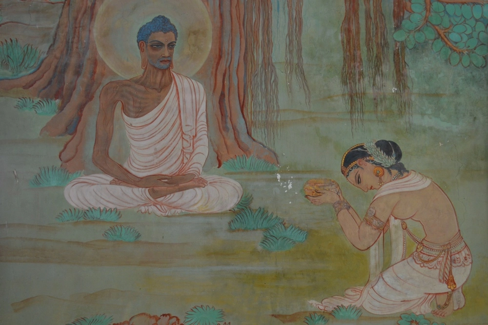Этапы жизни Будды — отстранение от мирских благ, уединение, аскетический монашеский образ жизни.