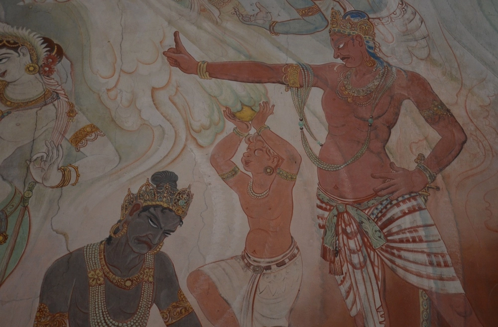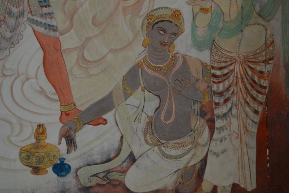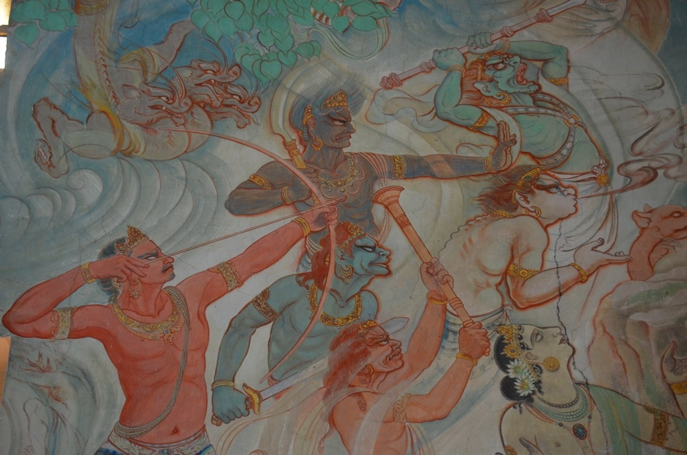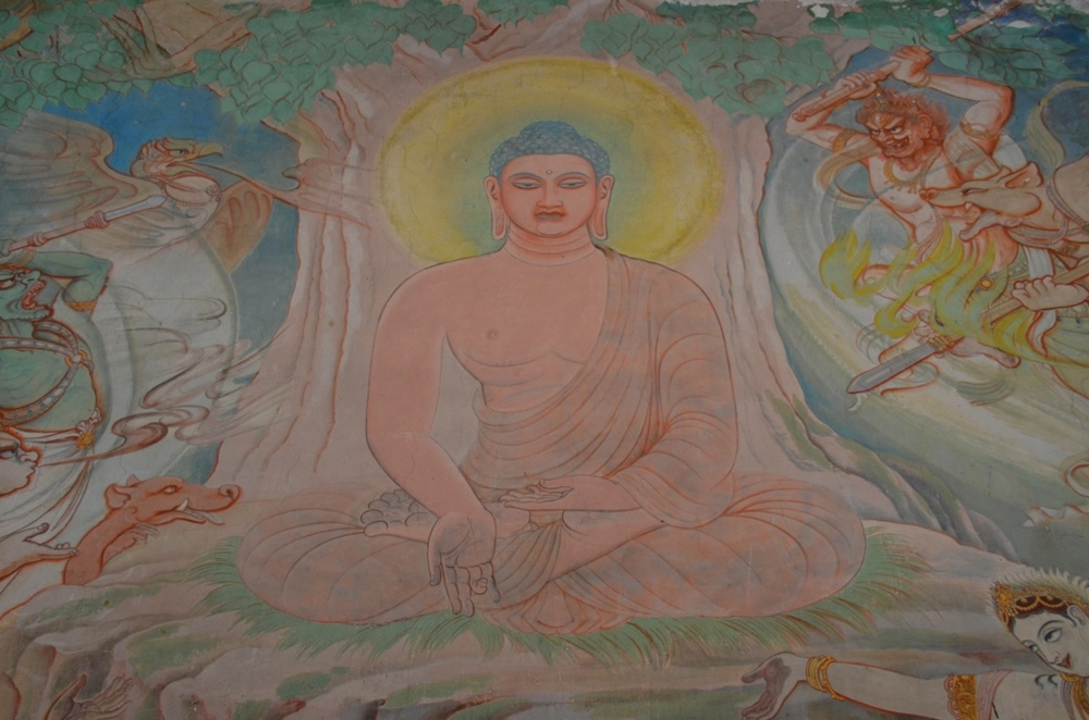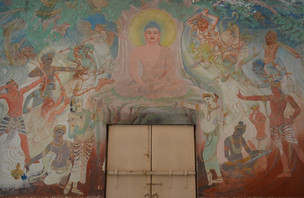 Стены храма украшают фрески, посвящённые жизни Будды. Основатель буддизма и главный его учитель Будда Шакьямуни родился в 566 году до н. э. в Непале, но основные места, связанные с его деятельностью, находятся на территории современной Индии — в Бодх Гайе он достиг просветления, в Сарнатхе — прочитал первую проповедь, а в Кушинагаре в 486 году до н. э. он скончался.