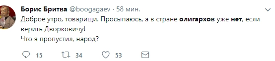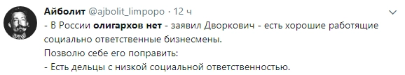 Пользователи Сети с интересом отреагировали на заявление вице-премьера Аркадия Дворковича об отсутствии олигархов в России. В интервью телеканалу Bloomberg он рассказал, что подобная категория людей осталась в 90-х годах прошлого века.