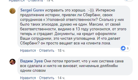 Так уж совпало, что завтра мне нужно с мамой лететь в Германию на операцию. И теперь благодаря Сберу поездка и сама операция могут не состояться. Свои чувства по этому поводу я без мата изложить не могу… Я затрудняюсь даже представить себе степень бардака и пофигизма в крупнейшем банке страны, если в нем возможна такая история, — заключил мужчина.