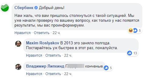 «Ситуация, о которой вы спрашиваете не носит системный характер и является клиентским кейсом. Мы находимся с клиентом на связи и надеемся решить возникшую проблему уже в ближайшее время», — заявили в пресс-службе Сбербанка.