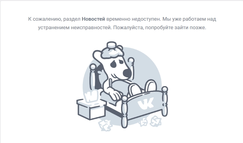 Едва наладилось отображение страниц и отправка сообщений, как пользователи стали информировать о новой напасти — лента новостей «ВКонтакте» стала недоступной для них.