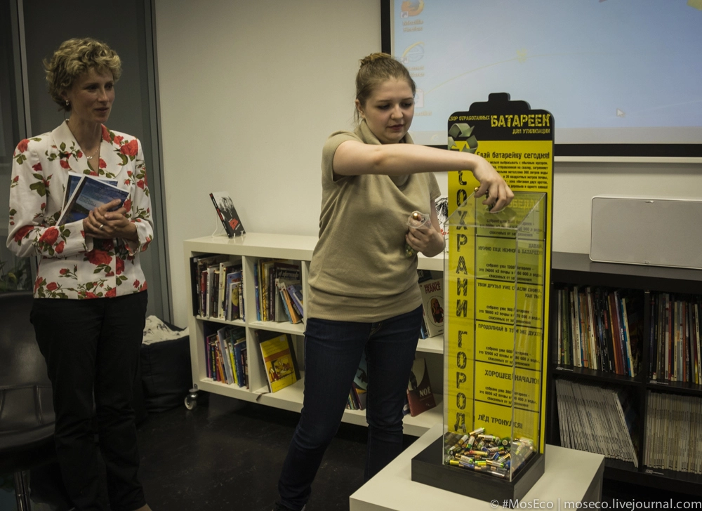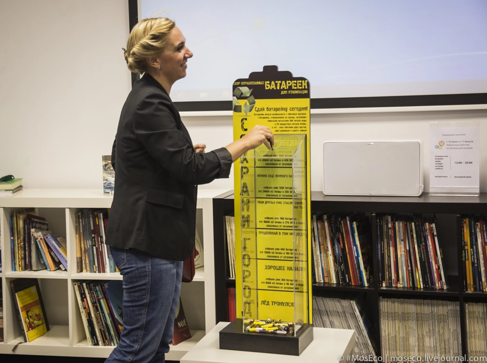 В среду, 25 июня, в Российской Государственной Библиотеке для Молодежи прошло торжественное открытие нового пункта сбора отработанных батареек, на котором собрались эко-активисты, посетители библиотеки и журналисты, чтобы обсудить проблемы и возможности раздельного сбора батареек в Москве и в России.
