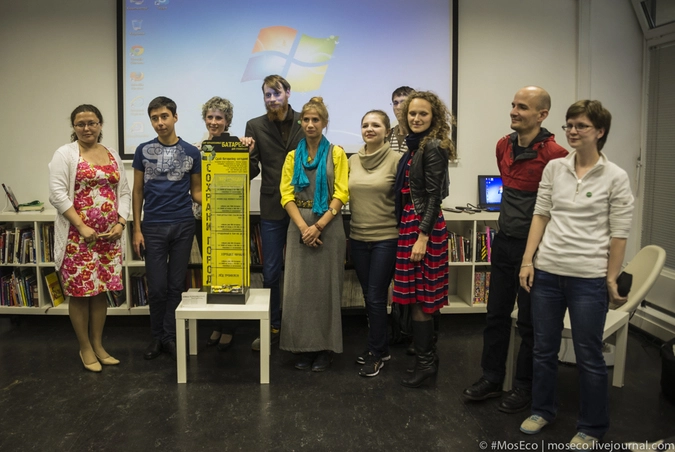 После выступления Михаила Антонова, координатора проекта, и вопросов от присутствующих, было сделано общее фото, и сделаны первые торжественные вбросы батареек — некоторые люди принесли из дома коробки батареек, которые они копили несколько лет.