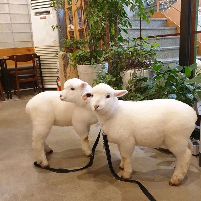 Портал Bored Panda отыскал первоисточник снимков. Им оказалось овечье кафе Nature Cafe, которое находится в Южной Корее.
