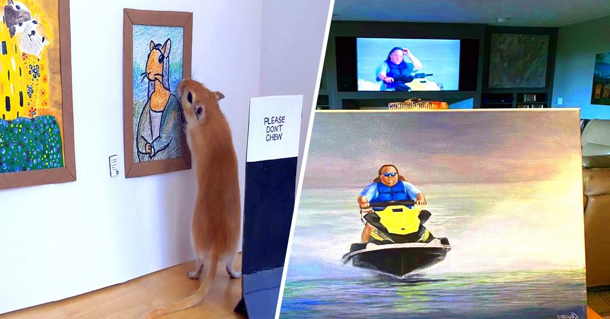 «Карантин, день 14-й. Я и мой парень провели целый день, создавая художественную галерею для нашей песчанки»