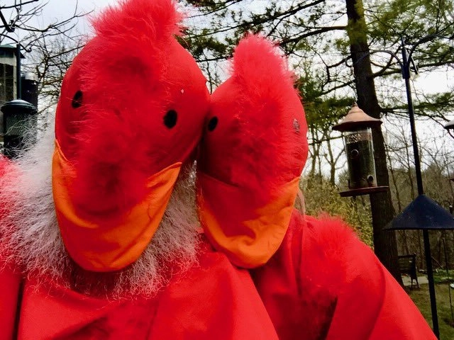 «Мои родители прислали мне это фото с подписью „Гигантские красные кардиналы попали в объективы камеры“. 50 лет в браке. 30 дней на карантине»