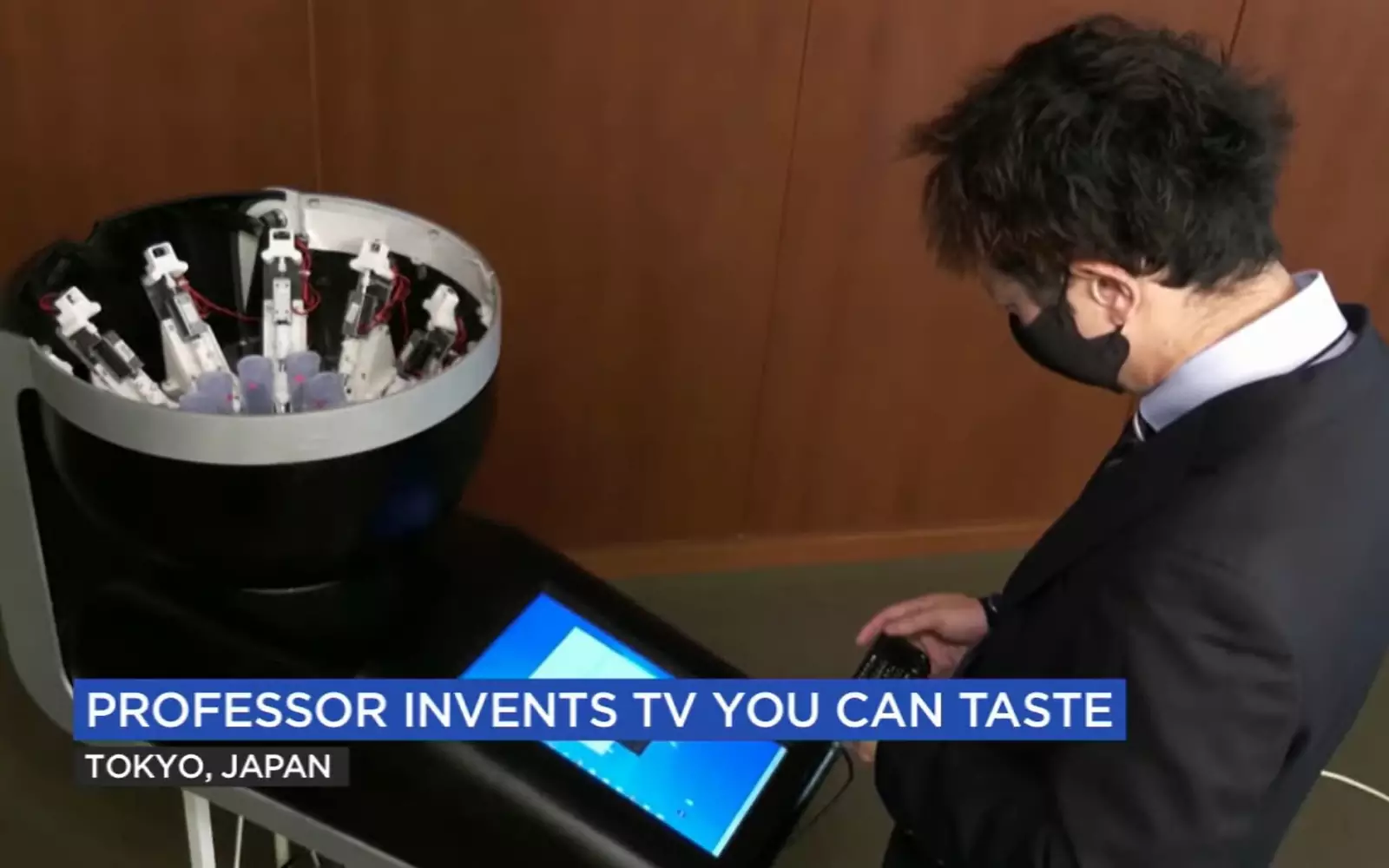 Японец создал устройство Taste the TV, которое может передавать вкус еды. Оно представляет собой телеэкран с прибором, синтезирующим десять разных вкусов, которые смешиваются в зависимости от запросов зрителя. Полученная смесь распределяется на специальную пленку, которую можно лизнуть. Благодаря этому изобретение позволяет пользователю попробовать новые блюда, не выходя из дома.