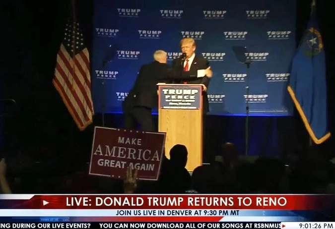 Выступление Дональда Трампа в Неваде транслировалось в прямом эфире нескольких телеканалов, камеры зафиксировали все развитие инцидента.