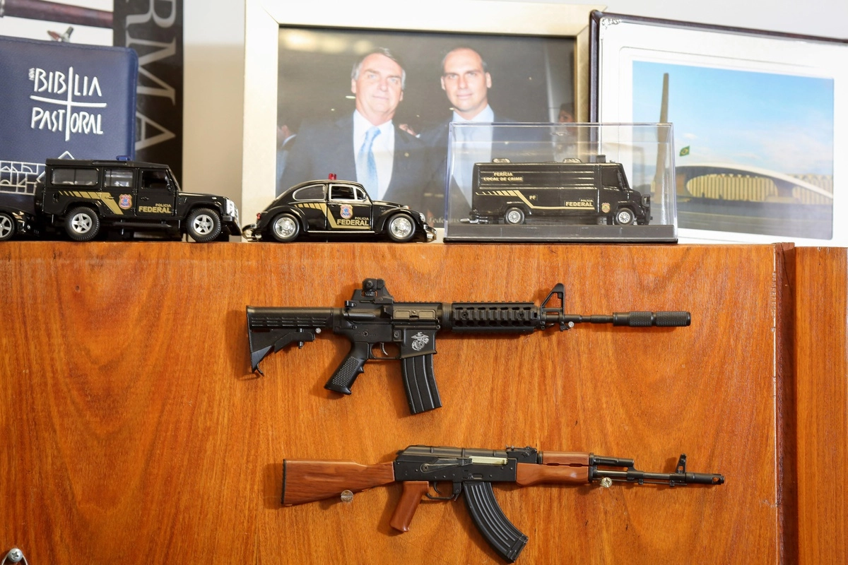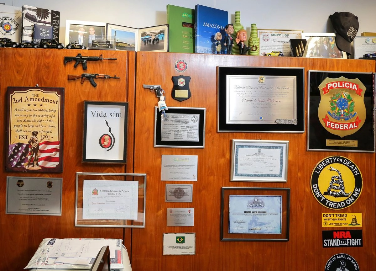 Впрочем, весь мир уже знает, со слов самого Жаира Болсонару, как он относится к правам человека, как он собирается дать «лицензию на убийство» полицейским, как он относится к «группам ликвидации» и как он собирался закрыть все правозащитные организации после прихода к власти. А приоритеты Флавио видны даже в интерьере его конгресс-офиса.