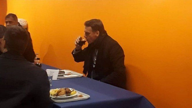Социальные сети активно осуждают потерянный и затравленный вид Болсонару, который избегает публичного общения на Всемирном экономическом форуме и даже вместо положенного по статусу ресторана одиноко ужинает в кафе супермаркета.