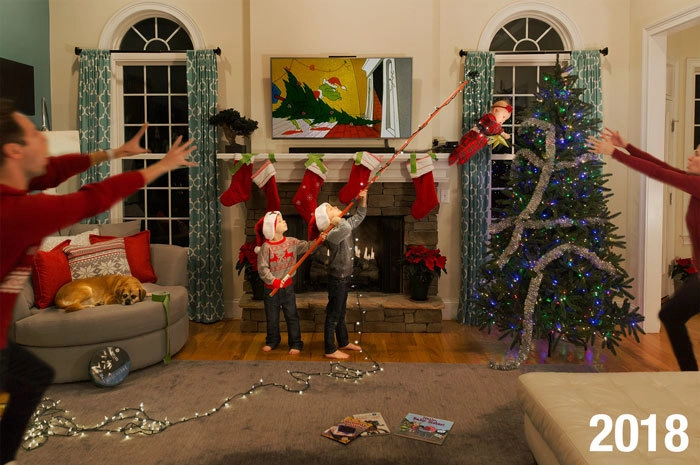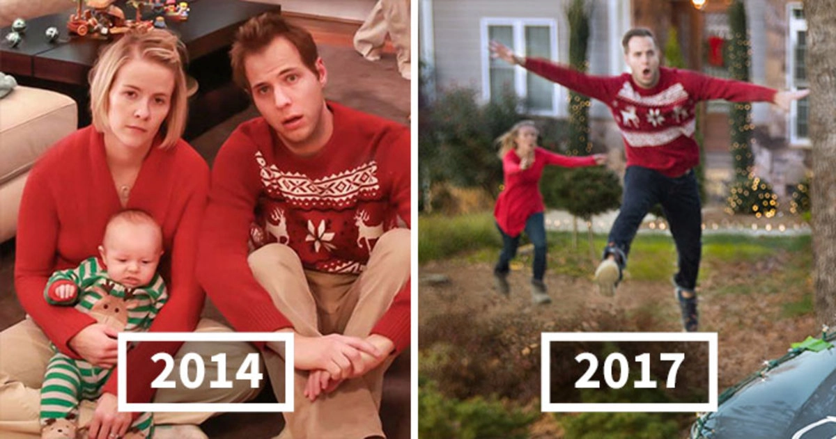 «В первый раз, когда мы пытались сделать традиционную милую фотографию, как на рождественской открытке, мы получили очень плохие результаты. Мы были молодыми родителями с годовалым ребёнком, и всё пошло не так — малыш всё время плакал, было ветрено, освещение менялось. Если двое из нас в какой-то момент выглядели хорошо, то третий обязательно моргал. Мы так сильно смеялись над нашими ужасными снимками, что решили просто отправить их родственникам как есть, и им это понравилось. Так родилась традиция делать безумные, полные хаоса, но гораздо более честные кадры, чем идеальные открытки», — рассказал глава семейства Джонатан Стэнли (Jonathan Stanley).
