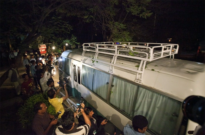 Автобус с семьей бин Ладена выезжает в аэропорт Исламабада, чтобы покинуть Пакистан. © Mian Khursheed/Reuters