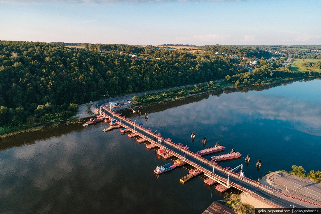 Уникальный разводной понтонный мост через Оку в Озёрах. Движение по нему закрывают, если уровень воды в реке увеличивается.