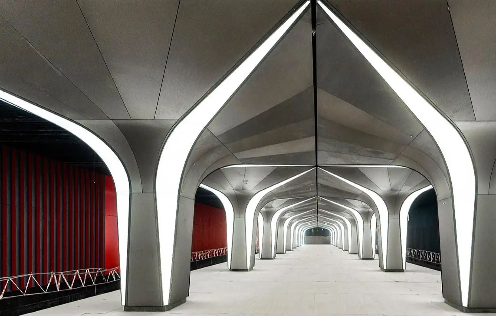 Мэр отметил, что важным элементом станции станут два ряда колонн со встроенной подсветкой, которые образуют арочные своды платформы. Напольное покрытие выполнено из светло-серого гранита, а цоколи путевых стен и колонн — из черного материала. Путевые стены отделаны панелями, которые, в зависимости от направления движения, демонстрируют черные или красные детали.