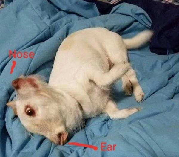 На самом деле все очень просто: на фотографии изображен маленький пес, который поднимает голову в сторону камеры. Одно его ухо загнулось под необычным углом и напоминает свиной пятачок. К тому же собака прижала лапки таким образом, что некоторые видят на фотографии какое-то парнокопытное животное.