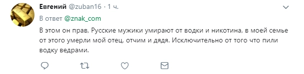 «Поэтому до 65 доживают лишь 57 мужчин из 100. Ну, и кто виноват? Сколько можно совершать ошибки, да еще и бахвалиться этим? Может, и нам — мужикам в России — пригодится перефразированная формула «Ранняя смерть — это ошибка в жизни», — заявил Киселев (смотреть с 37.45).