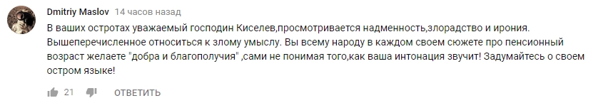 Мнение зрителей, высказавшихся в Сети, разделилось. Большинству не понравилось высказывание Киселева, базирующееся лишь на вредных привычках россиян. Тяжелые условия труда он кажется позабыл, уверены интернет-пользователи.