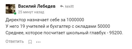 Позже управление по развитию государственно-общественного управления Департамента образования и науки Москвы пояснило «Ридусу», что при вычислении данной суммы учитывается заработная плата только учителей и не учитывается зарплата директоров и работников школ с другими должностями:
