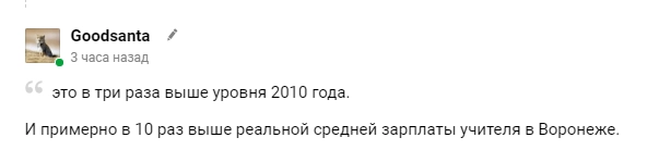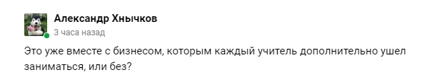 Некоторые из комментаторов отметили, что никто из учителей не работает по ставке 18 часов. У подавляющей части минимум 27 часов, а так же всякие классные руководства, внеурочная деятельность и репетиторство. То есть, даже если кто-то и достигает реального дохода в 100 тысяч рублей, то это значит, что кроме работы человек не занимается больше ничем: ни своими детьми, ни семьей, ни отдыхом.