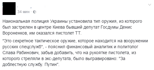 Украинский сегмент Сети также исходит злобой, но не в адрес депутата, а в отношении России. По мнению многих украиноязычных пользователей, за этим преступлением стоит сам Кремль с Владимиром Путиным во главе. Впрочем, что им ещё думать, если в первые же часы после убийства Вороненкова без расследований и каких-либо разбирательств украинские власти завели разговор о «российской следе».