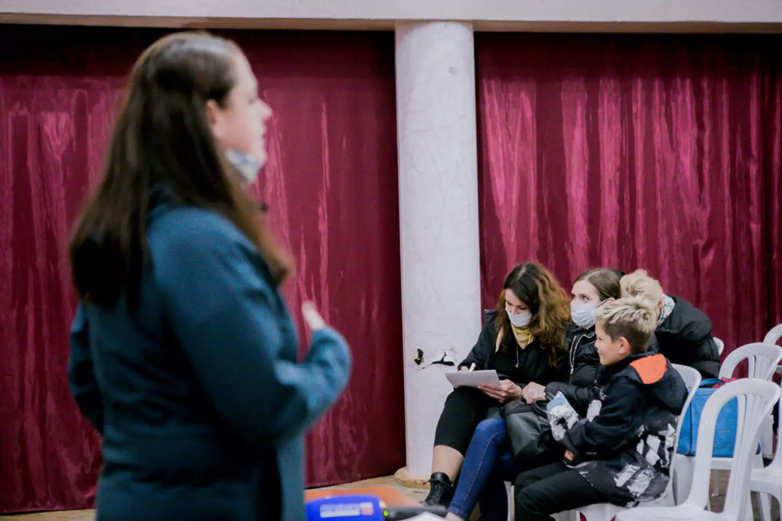 На мгновение кажется, что мы здесь одни, и никто на нашу лекцию про костный мозг не придет. Что мы немного посидим, сдадим зал даме в пальто и ни с чем уедем обратно в Мурманск. Но через минуту в дверь заглядывает женщина с ребенком. За ней вторая, третья. Кто-то просит сразу, до лекции, принять в ряды доноров костного мозга, потому что вечер и дел много. Девушка по имени Екатерина даже кладет на стол заранее распечатанную и на совесть заполненную анкету.