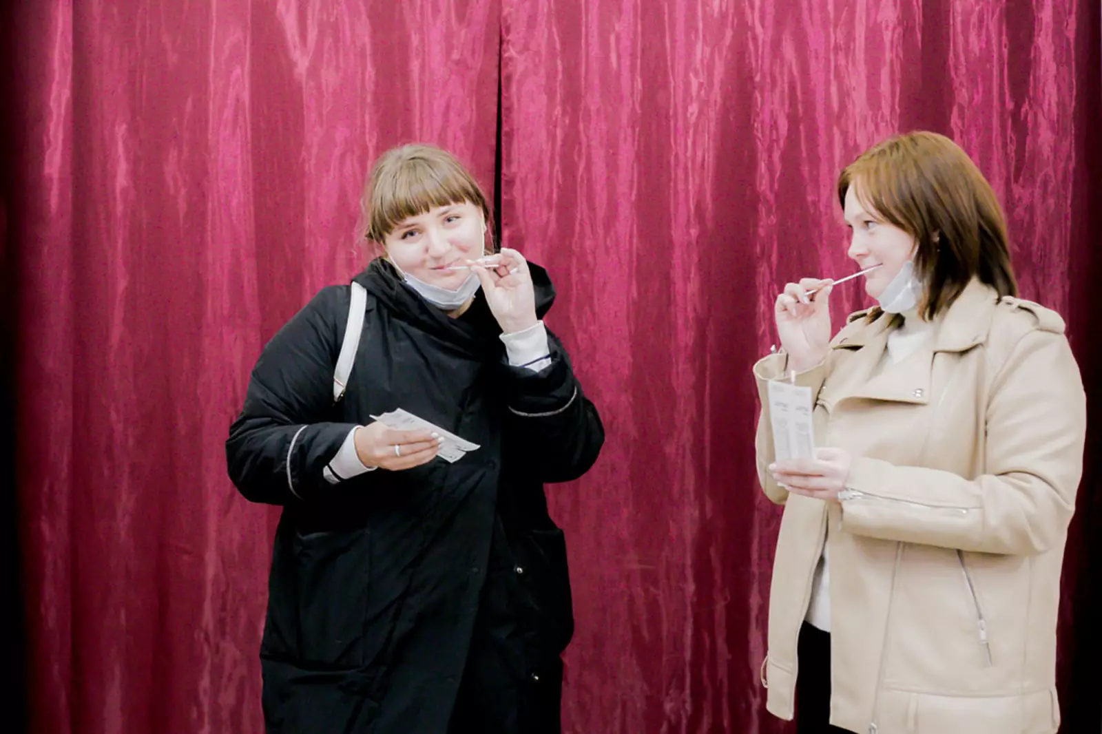 Люди тем временем подходят и подходят. Ни микрофона, ни экрана с презентацией, ни отопления, но все внимательно слушают лекцию. А потом трут за щеками палочки для забора буккального эпителия и заполняют анкеты. Не хватает ручек и горизонтальных поверхностей — вместо стола в ход идет даже пианино
