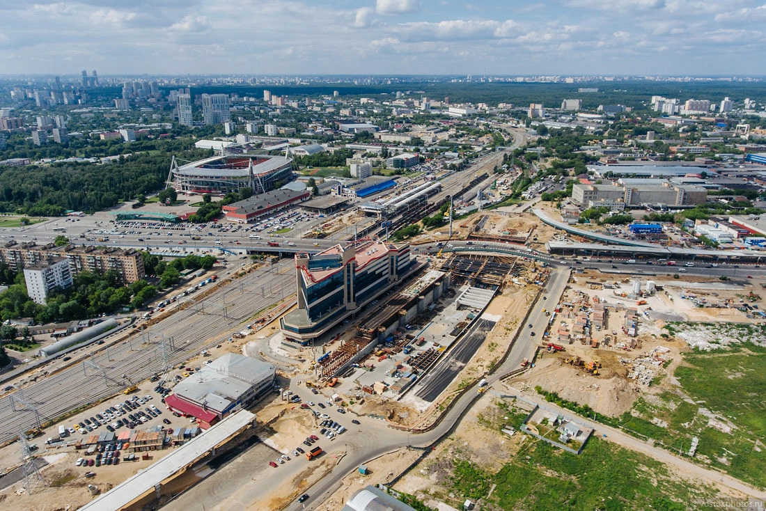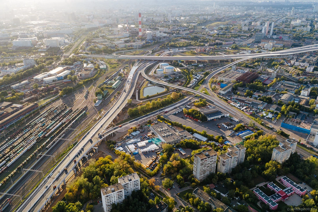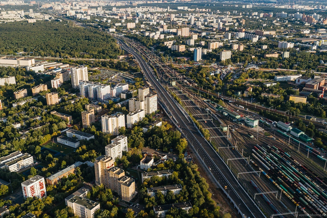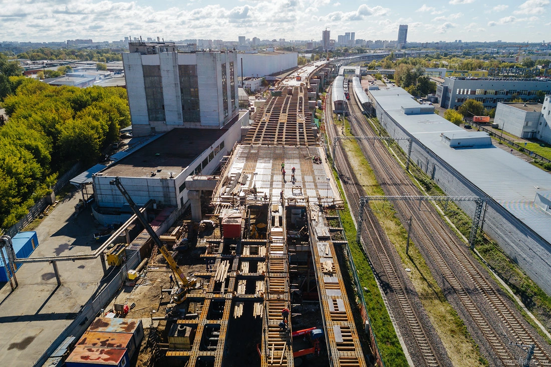 Сверху станция МЦК «Андроновка» и задел под будущее строительство магистрали вверху кадра.