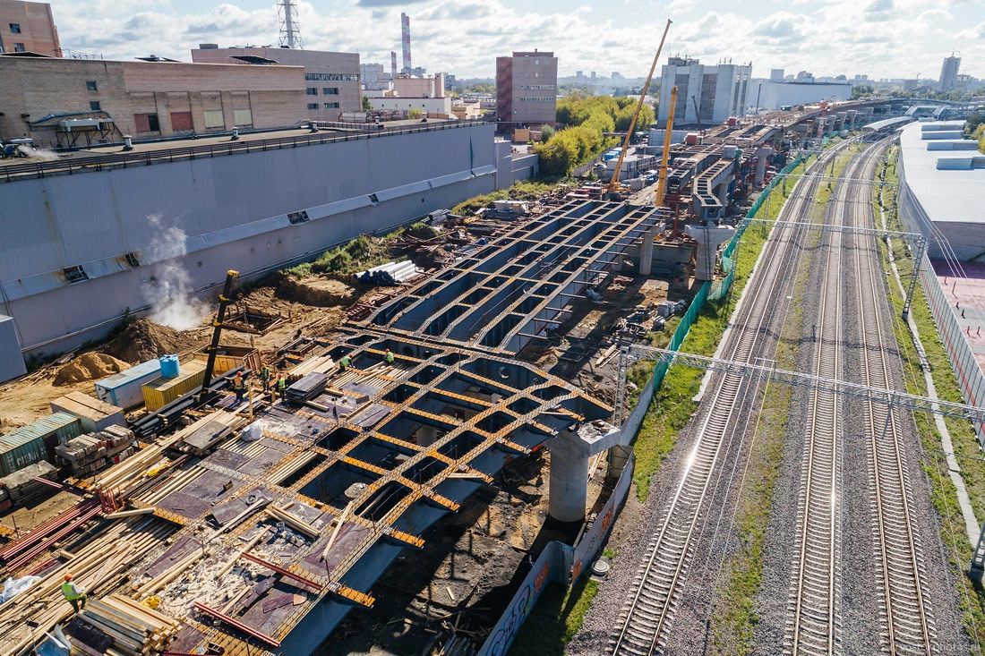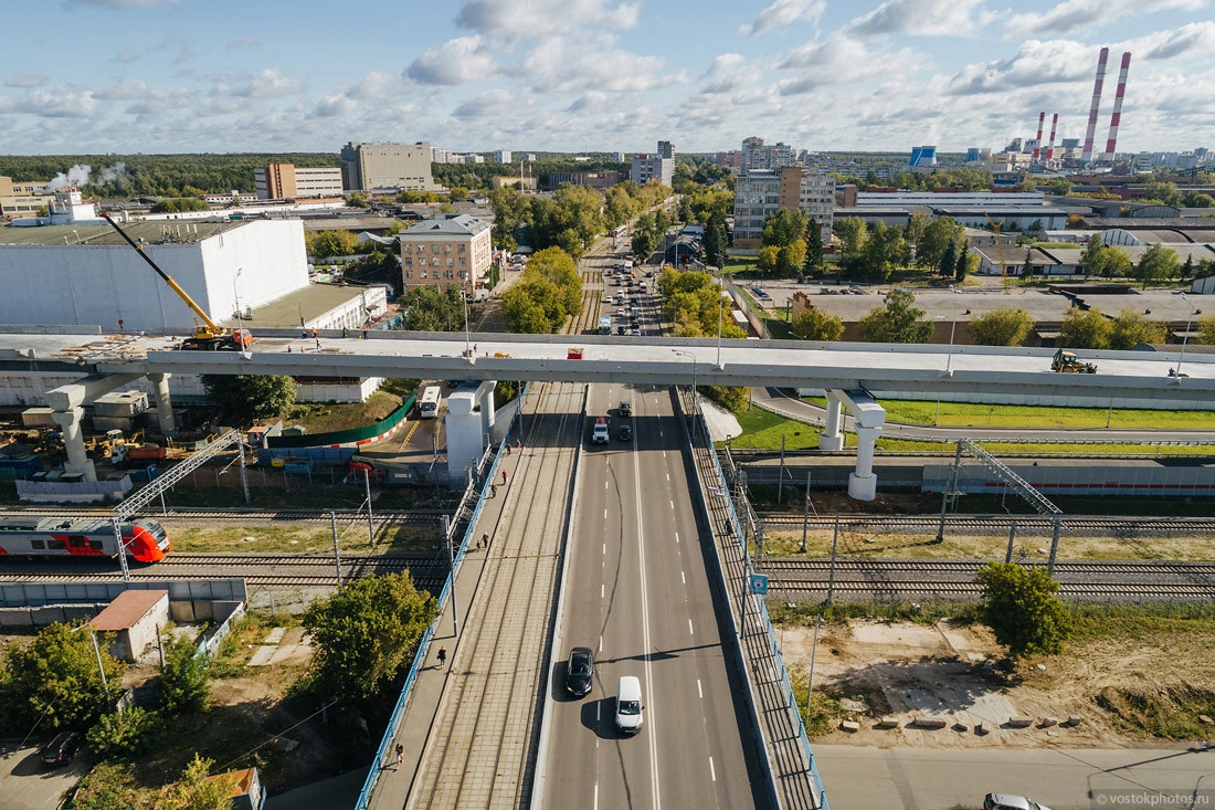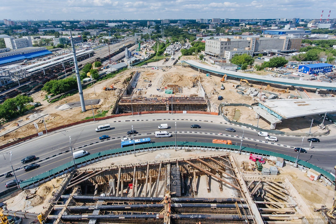 Строительство хорды в сторону Ярославского шоссе. Тут пока все в самом разгаре. Справа видна станция МЦК «Бульвар Рокоссовского».