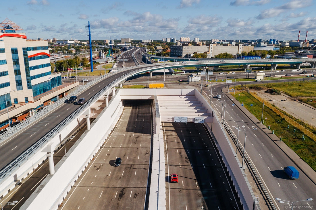 Пока движение открыто до Мытищинского путепровода (до Открытого шоссе). Дальше идет стройка. Здесь хорошо видно две трассы, расположенные друг под другом.