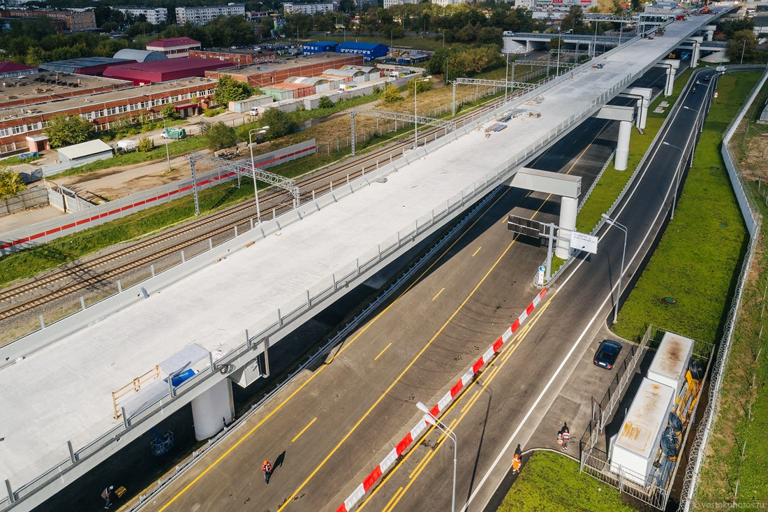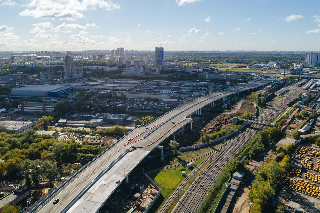 Посмотрим на хорду с другой стороны. Вид в сторону «Партизанской». Тут все давно открыто, не хватает только перехватывающей парковки у станции МЦК.