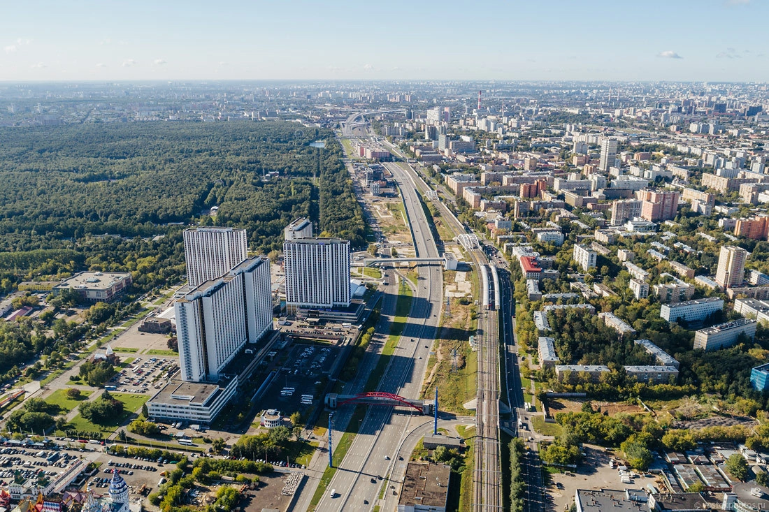 Сверху вниз на фотографии проходит Щелковское шоссе, слева направо — СВХ. Налево — станция метро «Партизанская», направо — «Черкизовская».