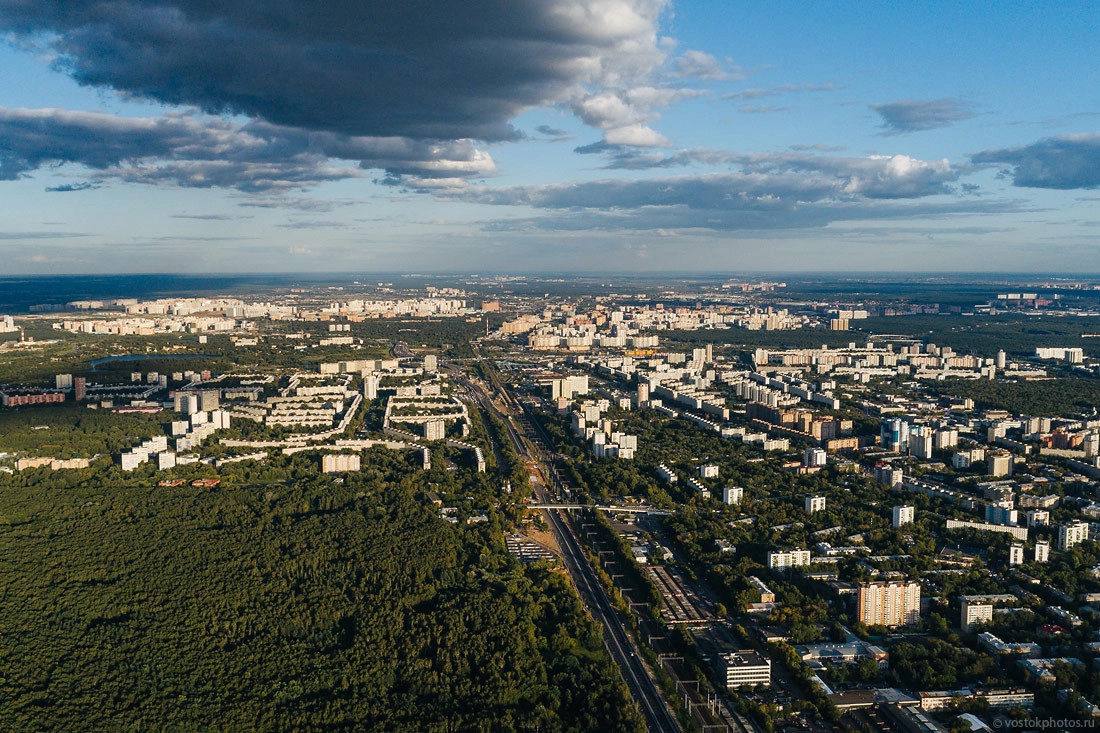 Вид в сторону Выхино. Первая эстакада — это улицы Паперника и Юности, вторая, вдалеке, — МКАД.