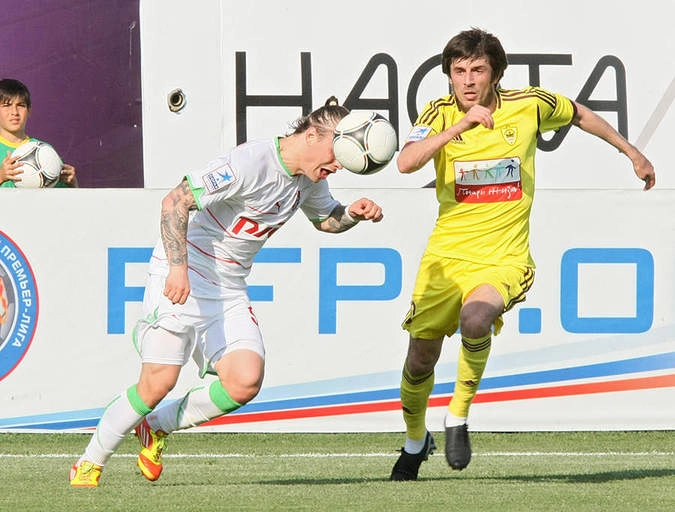 Игрок "Локомотива" Андрей Ещенко и игрок "Анжи" Шамиль Лахиялов. © Саид Царнаев/РИА Новости