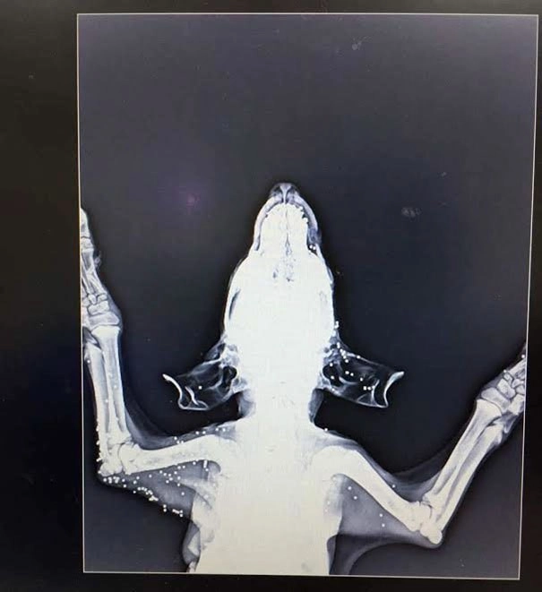 Пара повезла больную собаку в ближайшую ветклинику, где рентген показал, что несчастную буквально расстреляли картечью из дробовика.