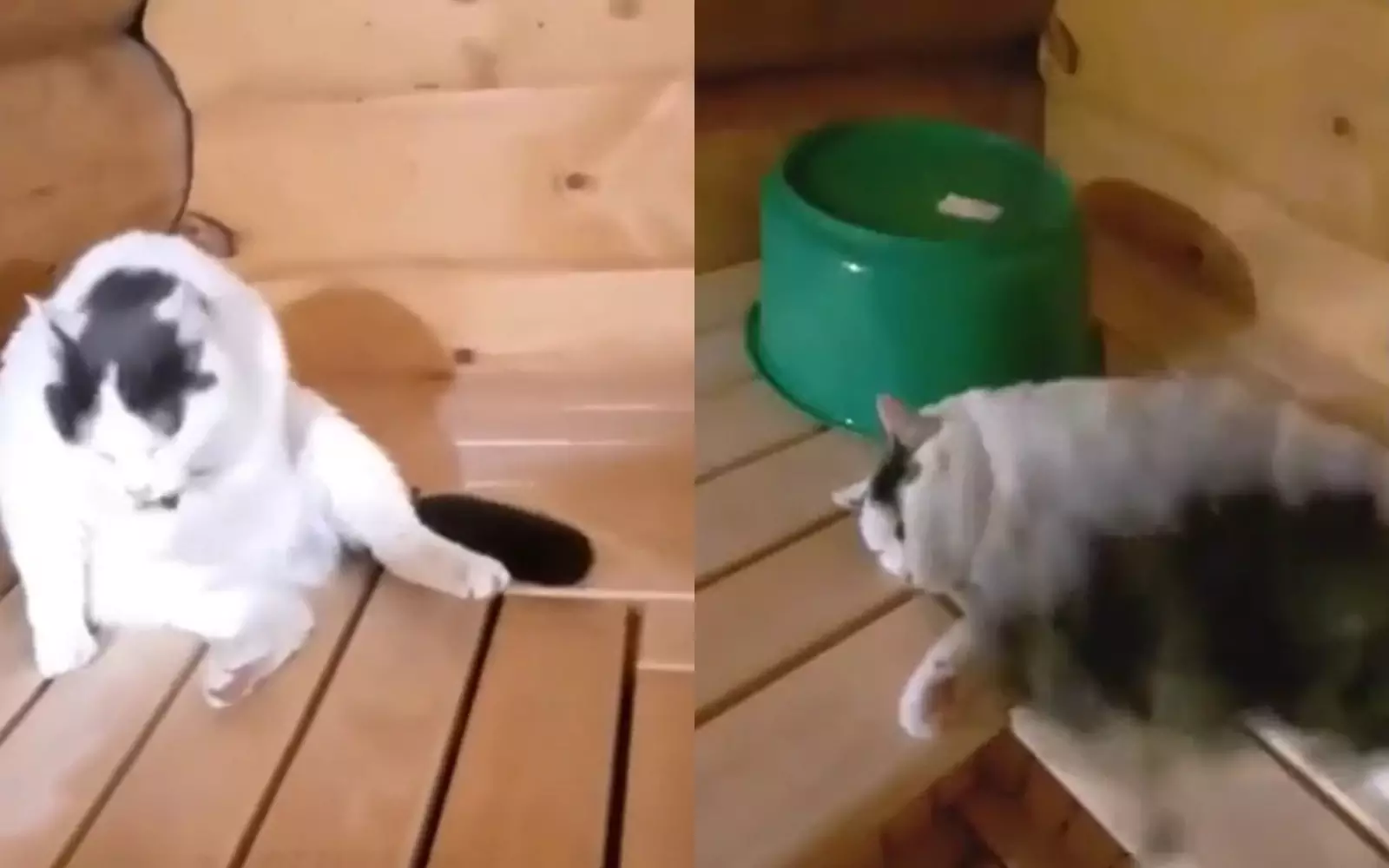«Шерстяной сломался»: на видео попал кот, обожающий париться в бане